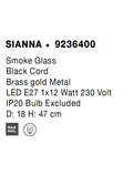 SIANNA Smoky Glass Brass Gold Metal LED E27 1x12 Watt 230 Volt IP20 Bulb Excluded Cable Length: 165 cm D: 18 H: 47 cm