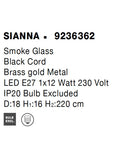 SIANNA Smoky Glass Brass Gold Metal LED E27 1x12 Watt 230 Volt IP20 Bulb Excluded D: 18 H1: 16 H2: 220 cm Adjustable height