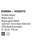 SIANNA Smoky Glass Brass Gold Metal LED E27 3x12 Watt 230 Volt IP20 Bulb Excluded D: 45 H: 170 cm Adjustable height