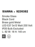 SIANNA Smoky Glass Brass Gold Metal LED E27 3x12 Watt 230 Volt IP20 Bulb Excluded L: 82 W: 18 H: 140 cm Adjustable height