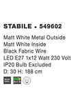 STABILE Matt White Metal Outside Matt White Inside LED E27 1x12 Watt IP20 Bulb Excluded D: 30 H: 188 cm