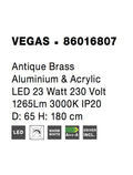VEGAS Antique Brass Aluminium & Acrylic LED 23 Watt 1265Lm 3000K IP20 D: 65 H1: 4 H2: 180 cm