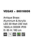 VEGAS Antique Brass Aluminium & Acrylic LED 30 Watt 1650Lm 3000K IP20 D: 85 H1: 4 H2: 180 cm