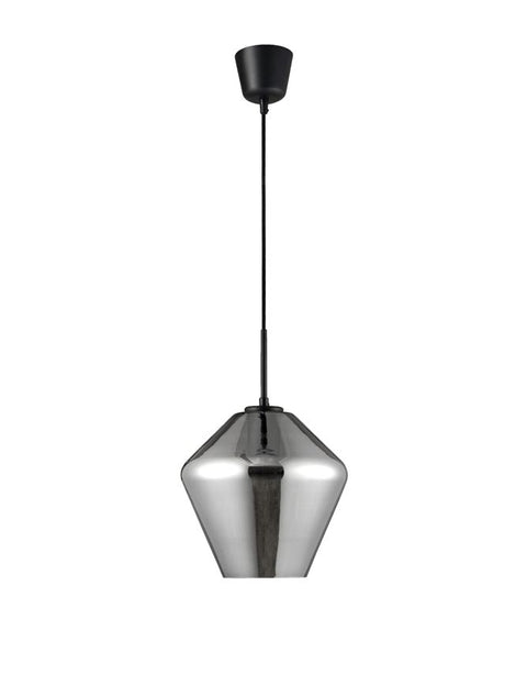 VEIRO Chrome Glass Black Metal Black Fabric Wire LED E27 1x12 Watt 230 Volt IP20 Bulb Excluded D: 23 H1: 22 H2: 120 cm