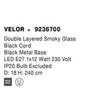 VELOR Double Layered Smoky Glass Black Cord Black Metal Base LED E27 1x12 Watt 230 Volt IP20 Bulb Excluded D: 18 H: 240 cm Adjustable height