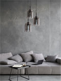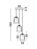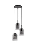 VELOR Double Layered Smoky Glass Black Cord Black Metal Base LED E27 3x12 Watt 230 Volt IP20 Bulb Excluded D: 30 H: 185 cm Adjustable height