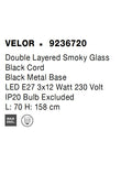 VELOR Double Layered Smoky Glass Black Cord Black Metal Base LED E27 3x12 Watt 230 Volt IP20 Bulb Excluded L: 70 W: 18 H: 158 cm Adjustable height