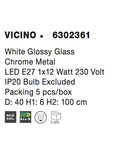 VICINO Pendant Light White Glossy Glass Chrome Metal LED E27 1x12W D:40 H1:6 H2:100cm