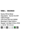 VIDA Sandy White Metal Adjustable - Switch On/Off USB Charger LED Cree 230 Volt 3000K Backlight 5 Watt 350Lm Reader 1x3 Watt 210Lm IP20 L: 35 W: 10 H: 8 cm