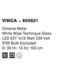 VINCA Pendant Light Chrome Metal White Wipe Technique Glass LED E27 1x12W D: 30 H1: 13 H2: 100 cm