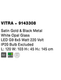 VITRA Satin Gold & Black Metal White Opal Glass LED G9 8x5 Watt 220 Volt IP20 Bulb Excluded L: 120 W: 103 H1: 45 H2: 145 cm