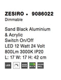 ZESIRO Dimmable Sand Black Aluminium & Acrylic Switch On/Off LED 12 Watt 24 Volt 800Lm 3000K IP20 L: 17 W: 17 H: 42 cm