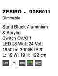 ZESIRO Dimmable Sand Black Aluminium & Acrylic Switch On/Off\ LED 28 Watt 24 Volt 1950Lm 3000K IP20 L: 19 W: 19 H: 122 cm