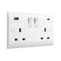 Our 13A rated socket boasts angled in-line terminals with captive screws which provide for quick and easy access and a hassle free installation Integrated 'fast charge' USB A + C ports Supplied with fixing screws Delivers 58% charge to mobile phones in just 28 minutes Twin earth fitted as standard to allow a double earth facility for installations that require a high integrity protective connection Double pole switching for the peace of mind of a safer installation of your socket Moisture gasket as standard to help prevent any moisture transfer to decorative front plate Our screwless ranges boasts a slim profile of 4.5mm. The faceplate clips on and off easily due to the four locking points on the rear of the plate making for secure fit. We recommend a minimum mounting box depth of 25mm Certified to BS1363-2 / BS EN 62368