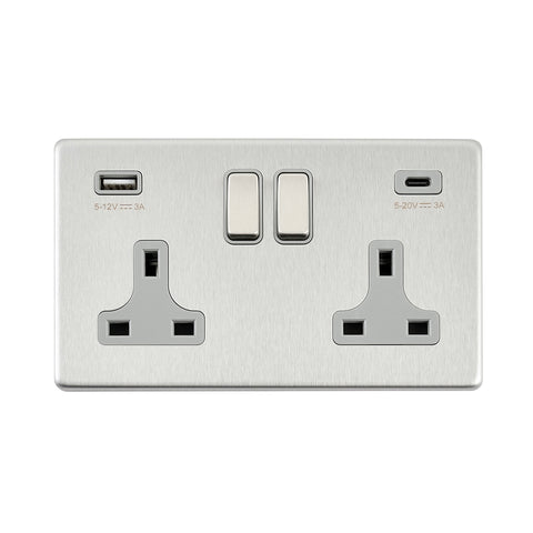 13A 2G DP Switched Socket with 45W USB A+C