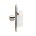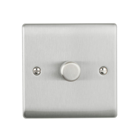 5-100W LED Dimmer The dimmer module we use is universal, making it the ideal choice for LED, halogen, CFL and incandescent lamps Supplied with fixing screws 2 way push on/off with rotary control Moisture gasket as standard to help prevent any moisture transfer to decorative front plate We recommend a minimum mounting box depth of 25mm Certified to IEC/BS EN60669