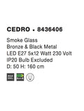 CEDRO Smoky Glass Bronze & Black Metal LED E27 5x12 Watt 230 Volt IP20 Bulb Excluded D: 50 H: 160 cm