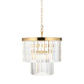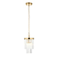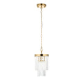 Radiating elegance and luxury, this single pendant light features a striking arrangement of angled glass droppers that cascade gracefully from a warm brass metal frame. The tiered design catches and reflects the light beautifully, creating a sparkling ambiance perfect for dining spaces, hallways, or statement corners. Sophisticated and glamorous, it adds a touch of Art Deco-inspired refinement to any interior.