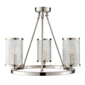 Clear ribbed glass with bubble detail capped with metal edging