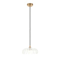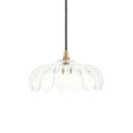 Elegant and timeless, this decorative heavy clear glass shade takes inspiration from classic French design, featuring a gentle dome scalloped form that diffuses light beautifully while adding artistic charm. Suspended from a classically styled black braided fabric flex set with warm brass details, adding vintage sophistication to any room. Ideal for kitchens, hallways, or bedrooms.