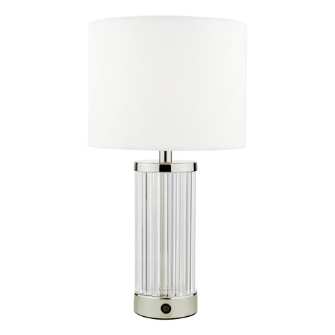 Enrico Rechargeable Table Lamp Polished Nickel and Glass With Shade LED