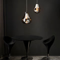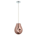 Features & Benefits: |High quality blown glass. Copper metallic glass finish. Chrome plated metal work details. Height adjustable 1.2 metre light grey fabric cable. Dimmable. Twin with E27 LED filament lamps for that unique 'on trend' look