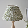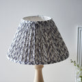 Features & Benefits: Country classic style table light base. Hand turned in solid natural wood finish. Handmade gathered pleated tapered shade. Digitally printed pearl grey faux linen fabric. Taped edge detailing with plain inner lining. Authentic B22 brass lamp holder. 1.5 metre grey fabric flex. Compatible with B22 LED lamps