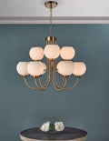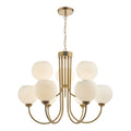Indra Opal Glass Globe 9 Light Pendant Natural Brass
