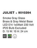 JULIET Smoke Gray Glass Brass & Gray Metal Base LED E14 1x12W IP20 Bulb Excluded D: 15 W: 10 H: 24 cm