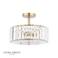 Laura Ashley Fernhurst 3 Light Semi-Flush Crystal and Antique Brass