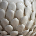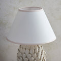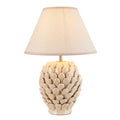 A beautifully organic shaped ceramic table light, decorated with handmade leaf shaped details and brushed aged brass switched B22 lamp holder. Paired with our stylish vintage & almond white 30cm Ivy shade to complete the look.