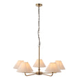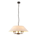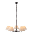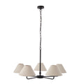 This elegant 5 light pendant is finished in matt black and features a timeless tapered shade in natural linen fabric. Complete with B22 lamp holders for an authentic classic look. Matching items available.