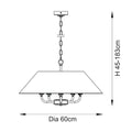Features & Benefits: Matt black painted metal work. Natural faux linen fabric shade. Height adjustable chain with 1.5 metre black fabric cable. Dimmable. Perfect for use with B22 LED lamps