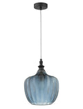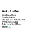 LONI Matt Black Metal Dark Blue Glass LED E27 1x12 Watt 230 Volt IP20 Bulb Excluded D: 24 H1: 32 H2: 120 cm