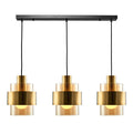 BRUSHED BRASS & AMBER GLASS PENDANT FITTING