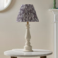 Getting its inspiration from turned classic staircase spindles, this table light is finished in high gloss almond white colour resin, with switched B22 brass lamp holder and pale braided fabric flex. Paired with our vibrant coral pink 25cm Ikat shade to complete this timeless country luxe look.