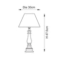 Getting its inspiration from turned classic staircase spindles, this table light is finished in high gloss almond white colour resin, with switched B22 brass lamp holder and pale braided fabric flex. Paired with our stylish pearl grey 30cm Ikat shade to complete this timeless country luxe look.