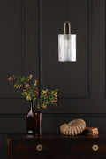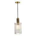 Nikolas Pendant Natural Solid Brass Ribbed Cylinder Glass
