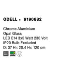 ODELL Chrome Aluminium Opal Glass LED E14 3x5 Watt 230 Volt IP20 Bulb Excluded D: 37 H1: 20.4 H2: 120 cm