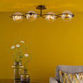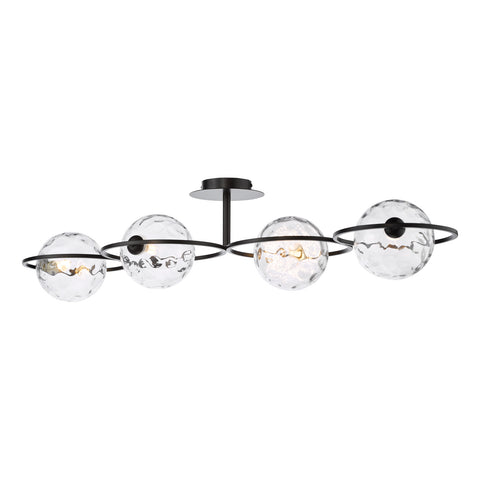 Olympus 4 Light Semi-Flush Matt Black and Clear Dimpled Glass