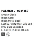 PALMER Smoky Glass Black Cord Black Metal Base LED E27 3x12 Watt 230 Volt IP20 Bulb Excluded L: 84 H 1: 17.4 H 2: 145 cm Adjustable height