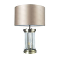 The Pandora 2 Light Table Lamp in Antique Brass is a statement piece comprising of sparkling crystal bars encased in antique brass bands. It is a match for the very popular Pandora Collection of ceiling lights. The elegant band of crystal reflects the light beautifully when illuminated for a glamorous lighting effect. It has two illuminating parts; inside the crystal lamp centre and also inside the material shade. The Pandora Table Lamp is fully LED Compatible.