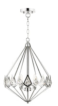 The Paragon 3 Light Pendant is a statement piece that would be a striking addition to any interior. The Diamond shaped pendant is constructed from a contemporary polished chrome cage with a complimentary ring of diamond shaped crystals which beautifully reflects the light and creates a stunning sparkling lighting effect. Also available in a single light version.