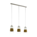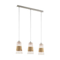 This three-light pendant luminaire of the BURNHAM series is made of satin nickel steel, white bast and glass. The different materials are not only beautiful to look at, but also allow the luminaire to shine in a soft, harmonious light with any E27 illuminant.The irregularly wrapped natural bast creates a soft, harmonious light in the luminaires of the BURNHAM series. This is in perfect contrast to the cool, partly satin glass.