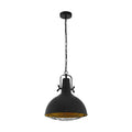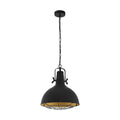 This pendant luminaire of the CANNINGTON series is made of black and golden steel. It has protective insulation and needs an E27-illuminant to shine.Industrial style at its best: The luminaires of the CANNINGTON series convey the rough style of factory buildings and bring the hard look into your home.