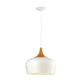 This pendant luminaire from the series OBREGON is made of creme-coloured steel and steel in oak. It has protective insulation and needs an E27-lamp to shine.The luminaires from the series OBREGON inspire with their special shapes and different colour combinations.