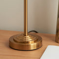 This elegant table lamp is the perfect foundation for showcasing your personal style. Featuring a timeless stepped design in a warm, brushed brass finish, it offers a refined silhouette that complements both classic and contemporary interiors.. Paired with our Ikat 16cm shade. .