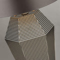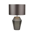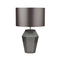 The smoked glass table lamp has a grey hexagonal style base and grey drum shade. The lamp would be ideal in a living room, bedroom or hallway in any type of home.
