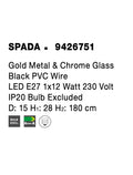 SPADA Gold Metal & Chrome Glass Black PVC Wire LED E27 1x12 Watt 230 Volt IP20 Bulb Excluded D: 15 H1: 28 H2: 180 cm