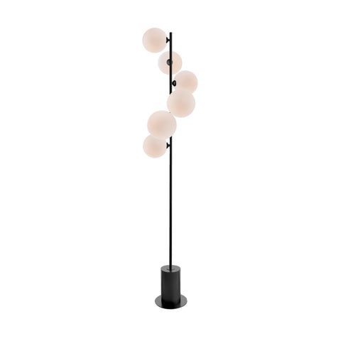 Spiral 6 Light Floor Lamp Matt Black and Large Opal Glass